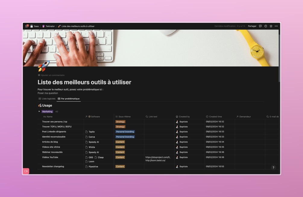 Une page complète sur laquelle je stocke les meilleurs outils à utiliser pour son entreprise.