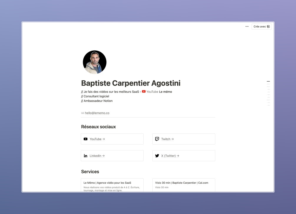 Un petit site personnel Notion pour regrouper ses liens (Link in bio)