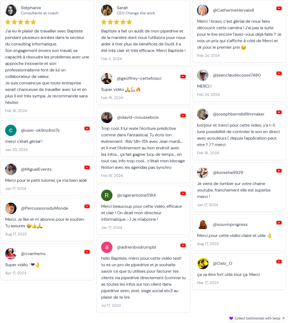Dans cette formation je vais vous expliquer pas à pas comment déployer une stratégie de témoignage client efficace. Notamment grâce à l’outil Senja.io